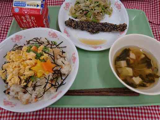 牛乳 ちらし寿司 ししゃもの石垣揚げ ゆで野菜 そうめん汁