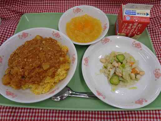 牛乳 ドライカレー 大豆入りゆで野菜 オレンジゼリー