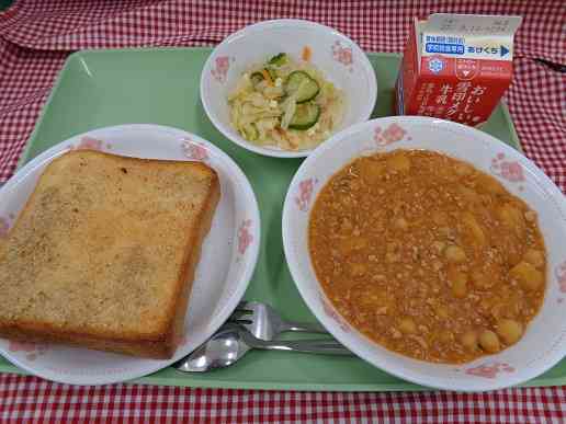 牛乳 セサミトースト チリコンカン チーズ入りゆで野菜