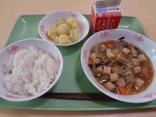 牛乳 ご飯 すき焼き風煮物 じゃが芋の香味和え