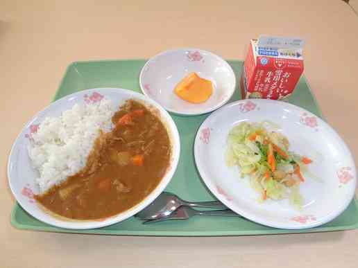 牛乳 カレーライス ひよこ豆入りゆで野菜 柿