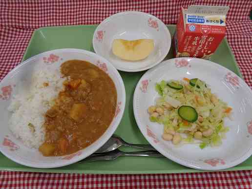 牛乳 カレーライス 大豆入りゆで野菜 りんご