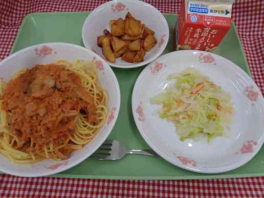 牛乳 トマトクリームスパゲッティ バター醤油ポテト コールスロー