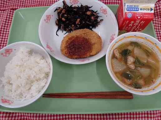 牛乳 ご飯 カレーコロッケ ひじきの煮物 みそ汁