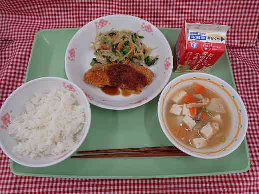牛乳 ごはん 白身魚のフライ 小松菜のあえもの みそ汁