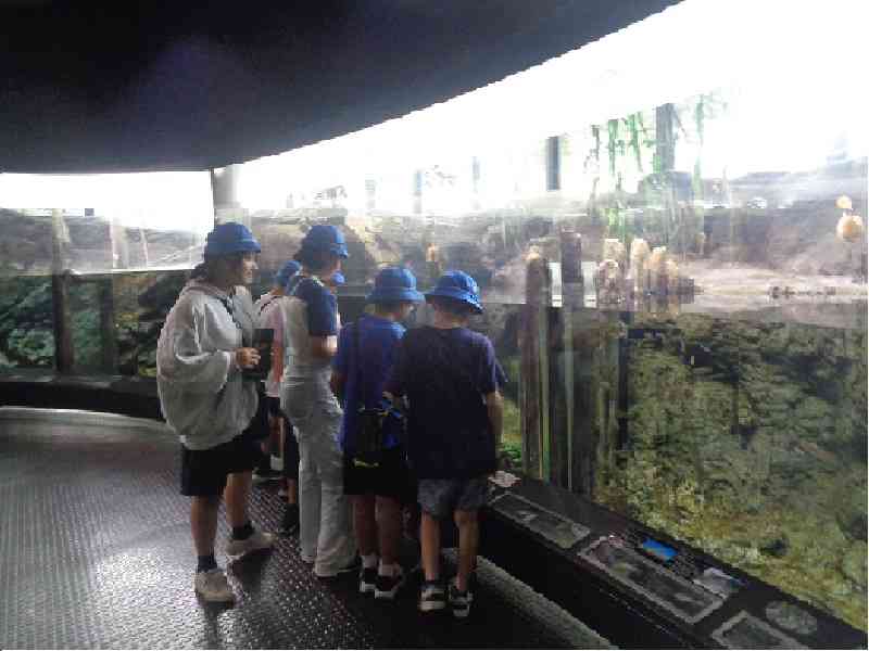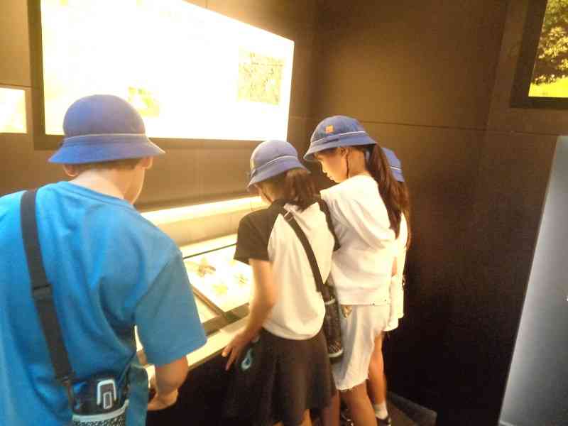 稲刈りの後は、茨城県立自然博物館に行きました。入り口の大きな恐竜に驚き、ワクワクしながら見学をスタートしました。見たことがない植物や海の生き物、化石など、自分たちの興味があるところを中心に、熱心に見学をしていました。思う存分見学し、大満足な1日となりました。