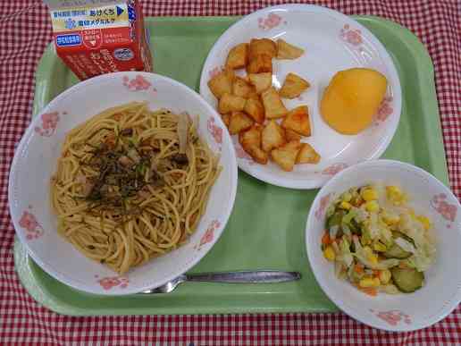 牛乳 秋の実りパスタ スパイシーポテト コーン入りゆで野菜 柿